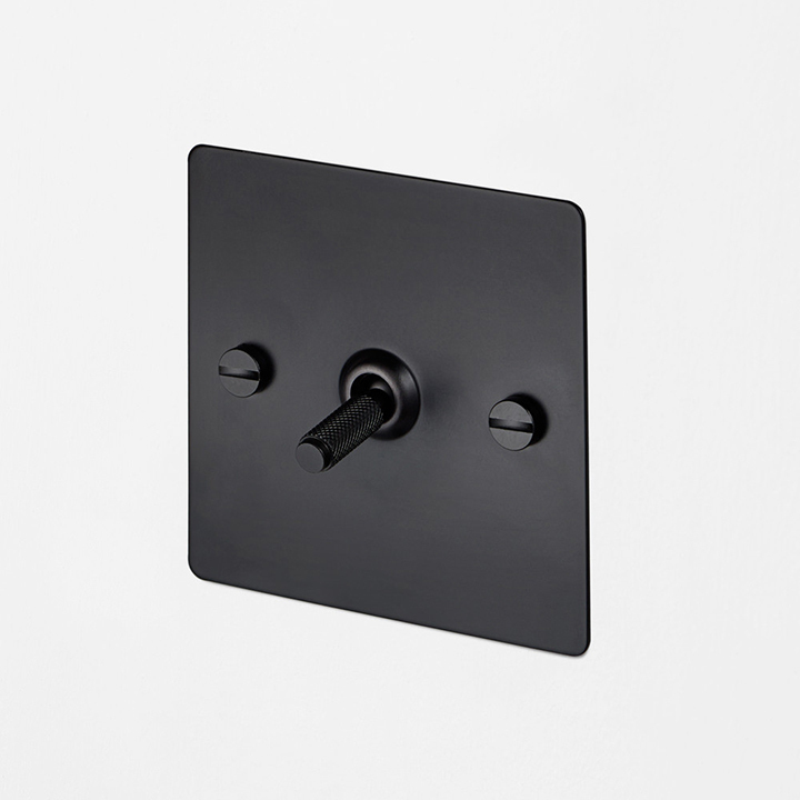 The intermediate toggle switch features a flat plate, fixed with our signature solid metal coin screws