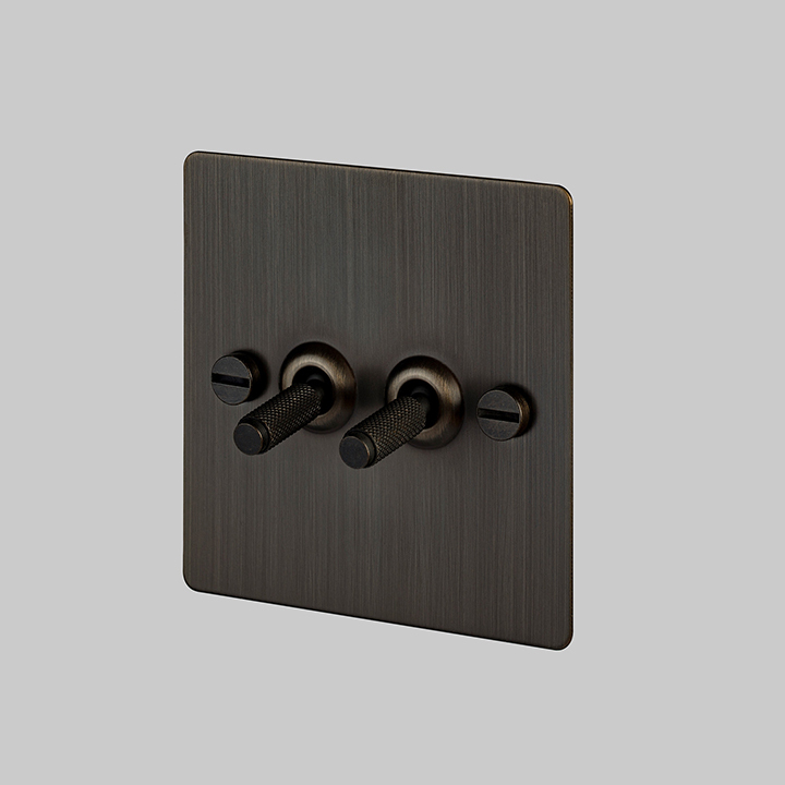 The intermediate toggle switch features a flat plate, fixed with our signature solid metal coin screws