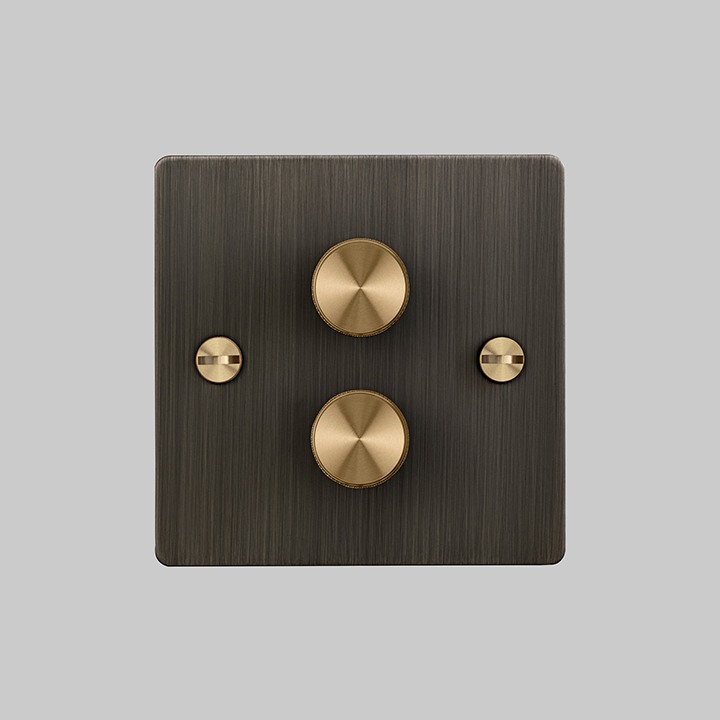 Fin. Smoked Bronze (Flat Plate) and Brass (Dimmer Knob and Coin Screw)