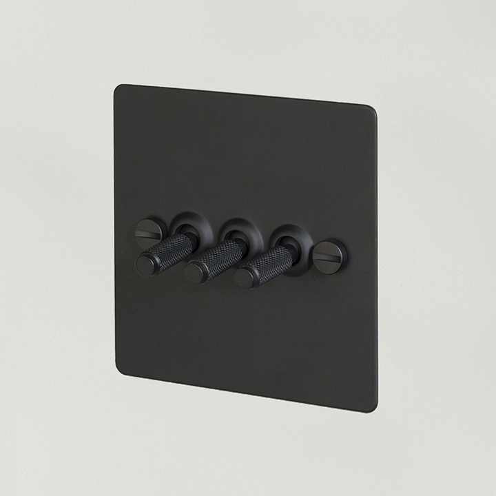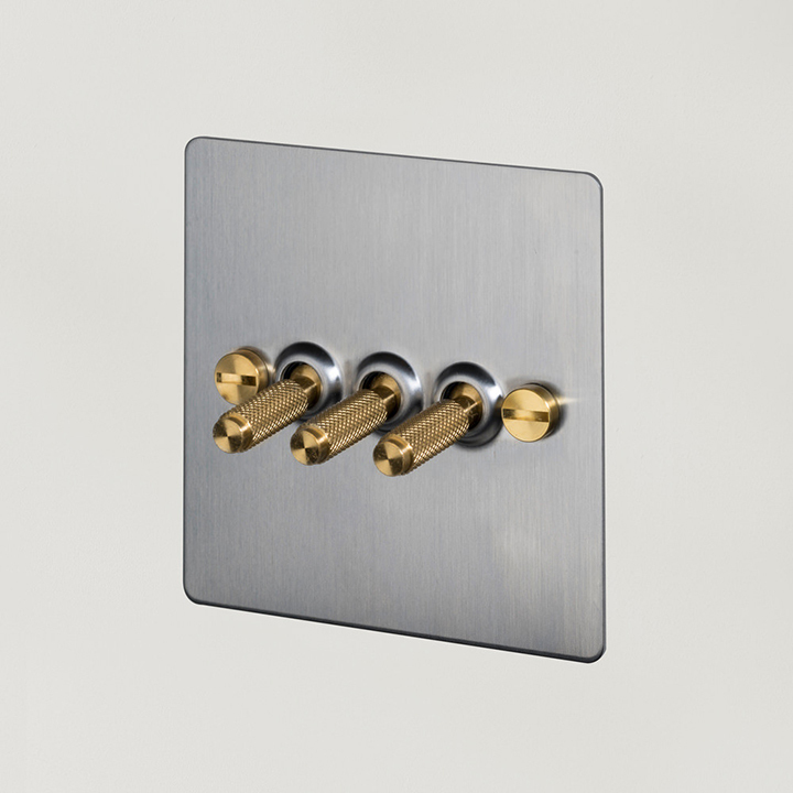 A 2G dimmer switch in solid metal finished in durable, UV stabilised, PU paint. It comes with a choice of solid metal detail kits including a dimmer knob and coin screws, available in steel, brass or black.