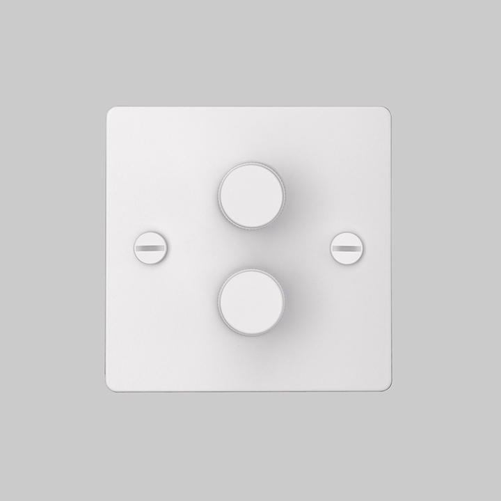 A 2G dimmer switch in solid metal finished in durable, UV stabilised, PU paint. It comes with a choice of solid metal detail kits including a dimmer knob and coin screws, available in steel, brass or black.