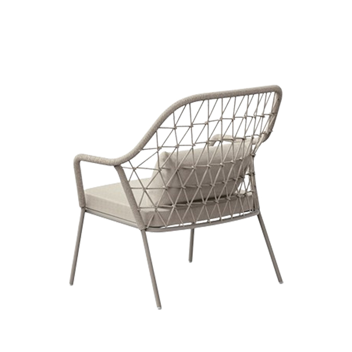 Rope chair aluminum frame with powder coated, rope woven, with fast dry foam outdoor cushion and back cushion