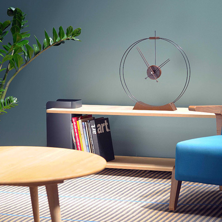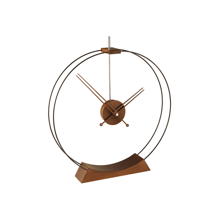 Maintaining the same essence of the brand’s iconic representative rings, this model incorporates a support to be displayed on a console type furniture. It combines walnut-finished wood with chrome-plated metal details. A collection of sculptural, avant-garde clocks with great character. Unique pieces for design lovers.