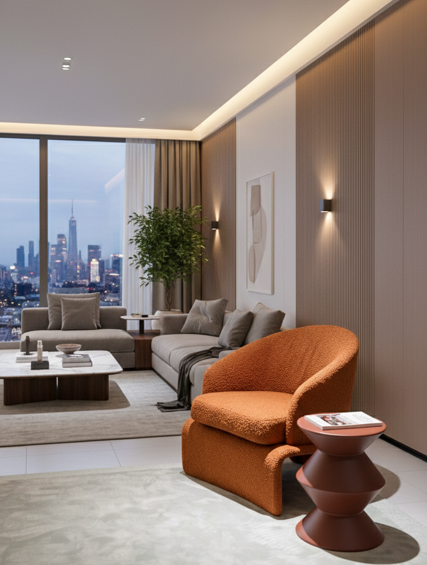 Living rooms as a sculptural accent chair
