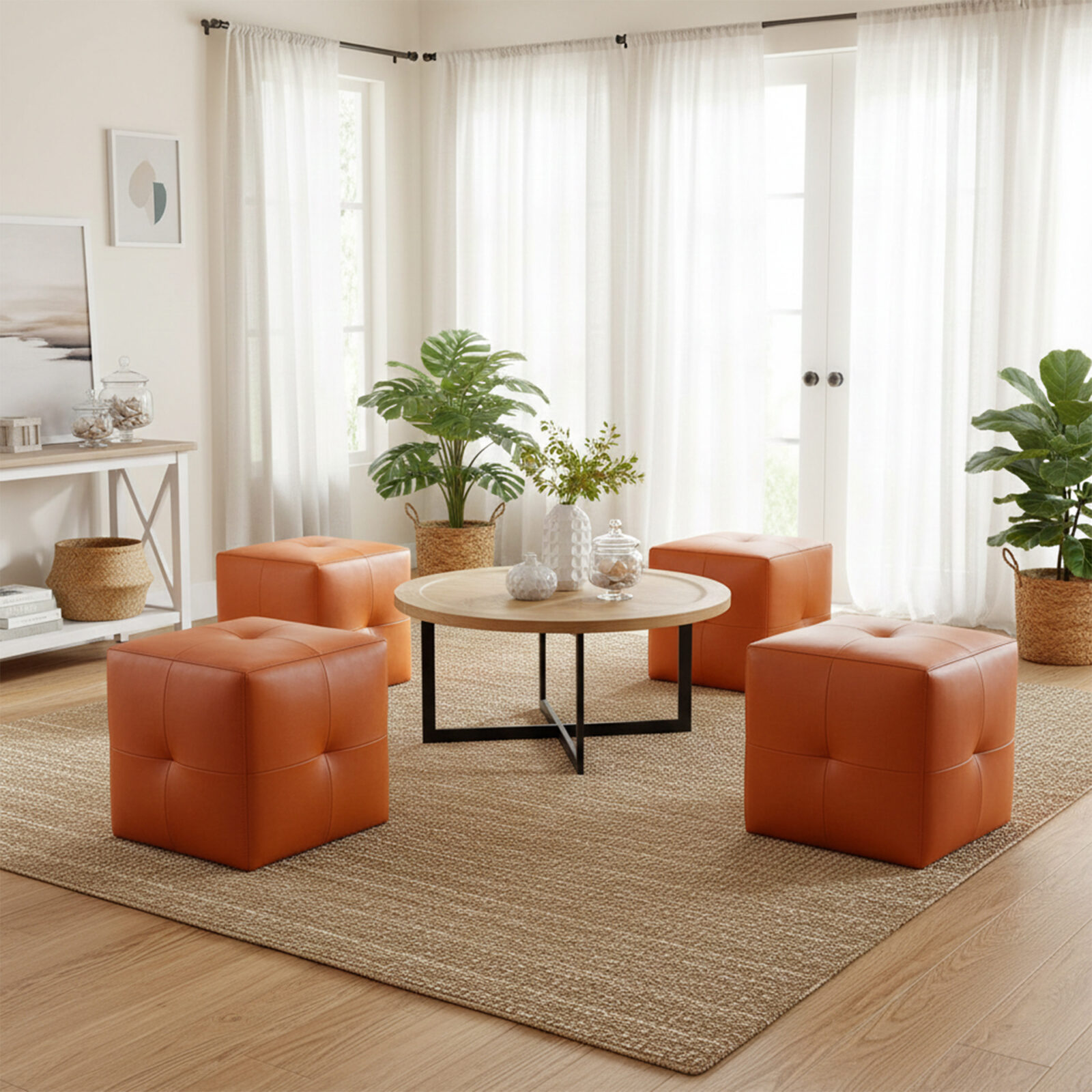 - Cocok sebagai stool aksen di sudut baca atau area lounge