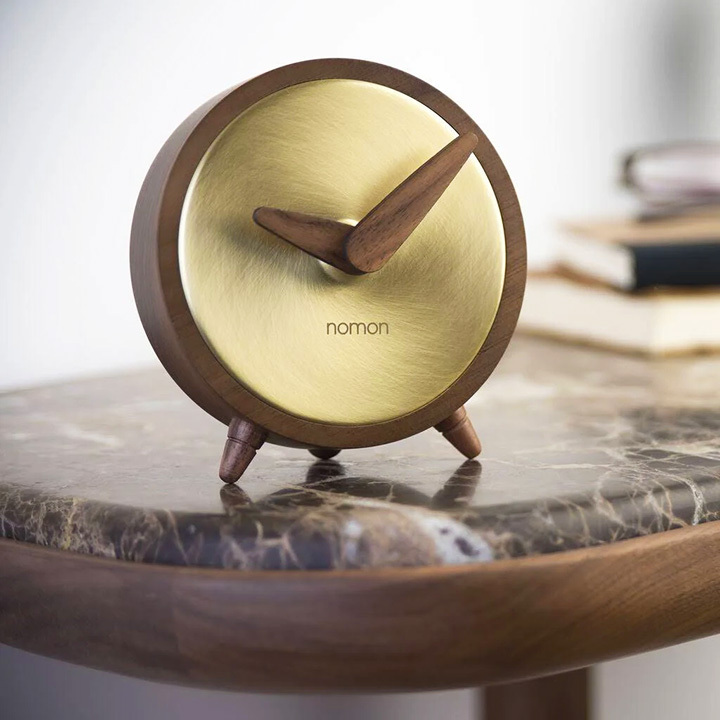 Atomo is a small designer clock designed to be placed on desks and tables, giving a touch of personality with its attractive look and color and materials. Handmade, the clock uses a simple German UTS mechanism, battery powered and completely silent.