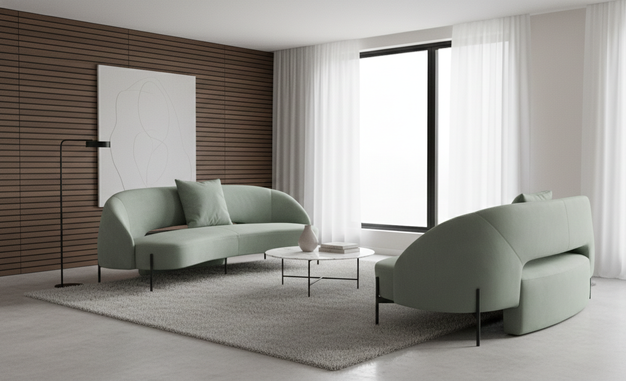 AUREL is a sofa defined by soft geometry, floating lightness, and quiet refinement.
