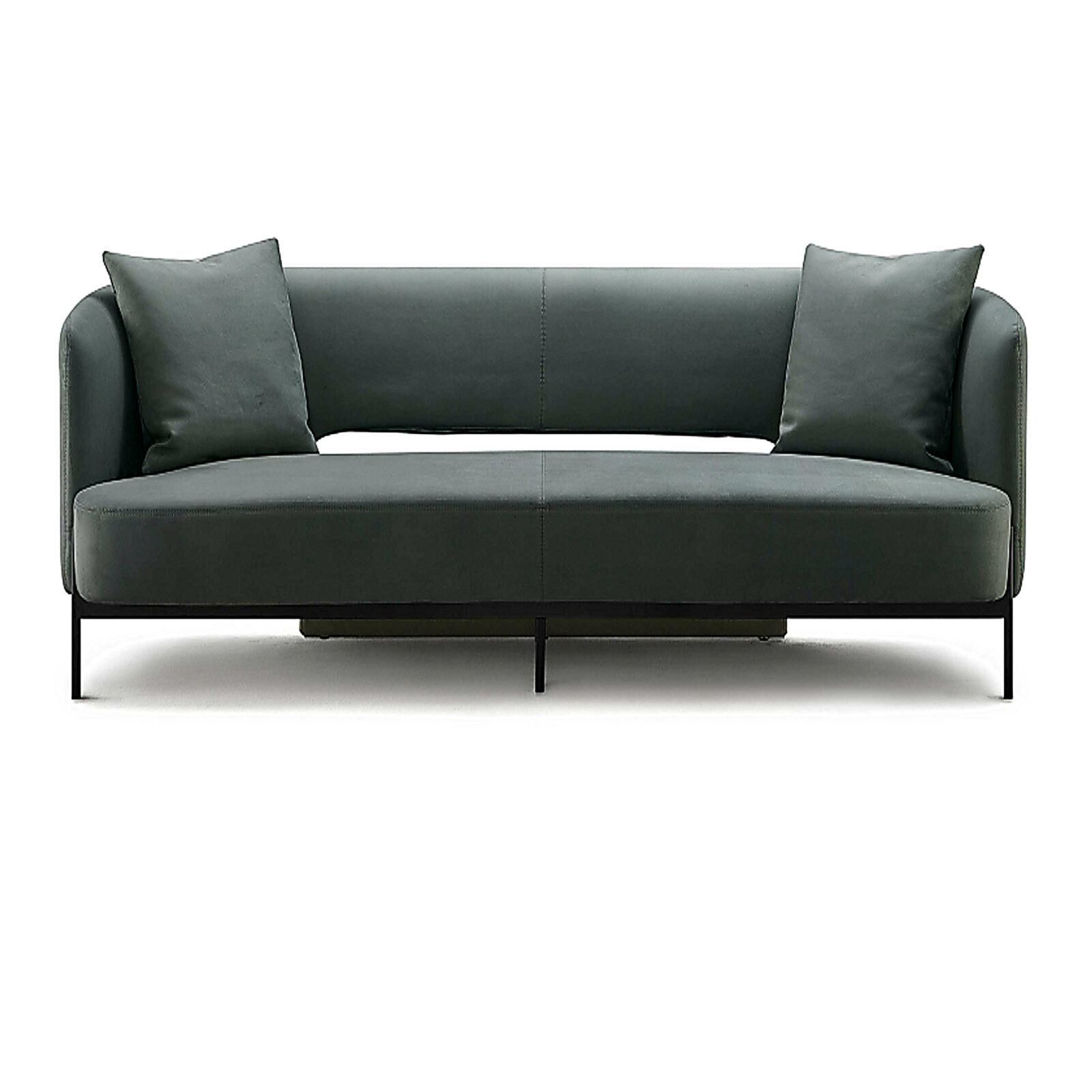 Its continuous backrest wraps gently around the seating, creating a subtle cocoon without visual heaviness. A distinctive detail is the negative gap between the back and seat, giving the sofa a “floating” character and adding architectural depth to an otherwise minimal silhouette.