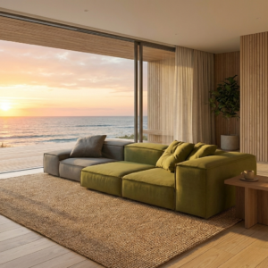 Boneli Sofa (Big Armrest) Olive Green Fabric mampu beradaptasi secara visual, menjadikannya pilihan aman sekaligus berkelas untuk berbagai gaya interior.