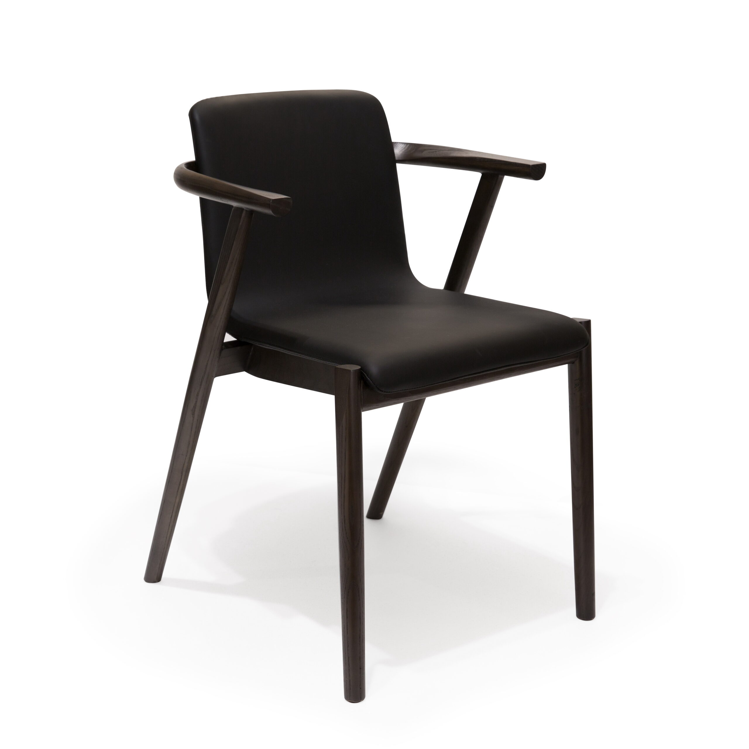 Brera pairs a slim upholstered seat and back with a beautifully shaped solid wood frame. The gently angled backrest supports posture naturally, while the integrated timber arms add comfort and an architectural character without looking bulky.