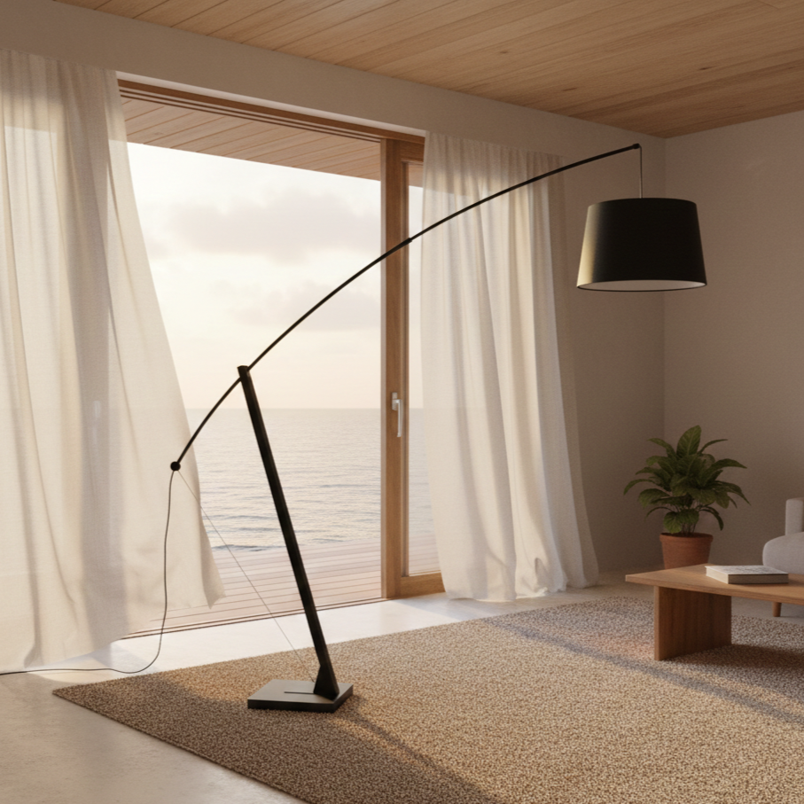 Banyak interior terasa terlalu kaku akibat pencahayaan yang keras atau desain yang terlalu teknis. Calamus Floor Lamp menawarkan solusi melalui cahaya yang terfilter lembut dari kap kain, ditopang struktur besi yang stabil. Ia menghadirkan keseimbangan ideal antara fungsi dan rasa memberi terang yang nyaman sekaligus menenangkan atmosfer ruang.