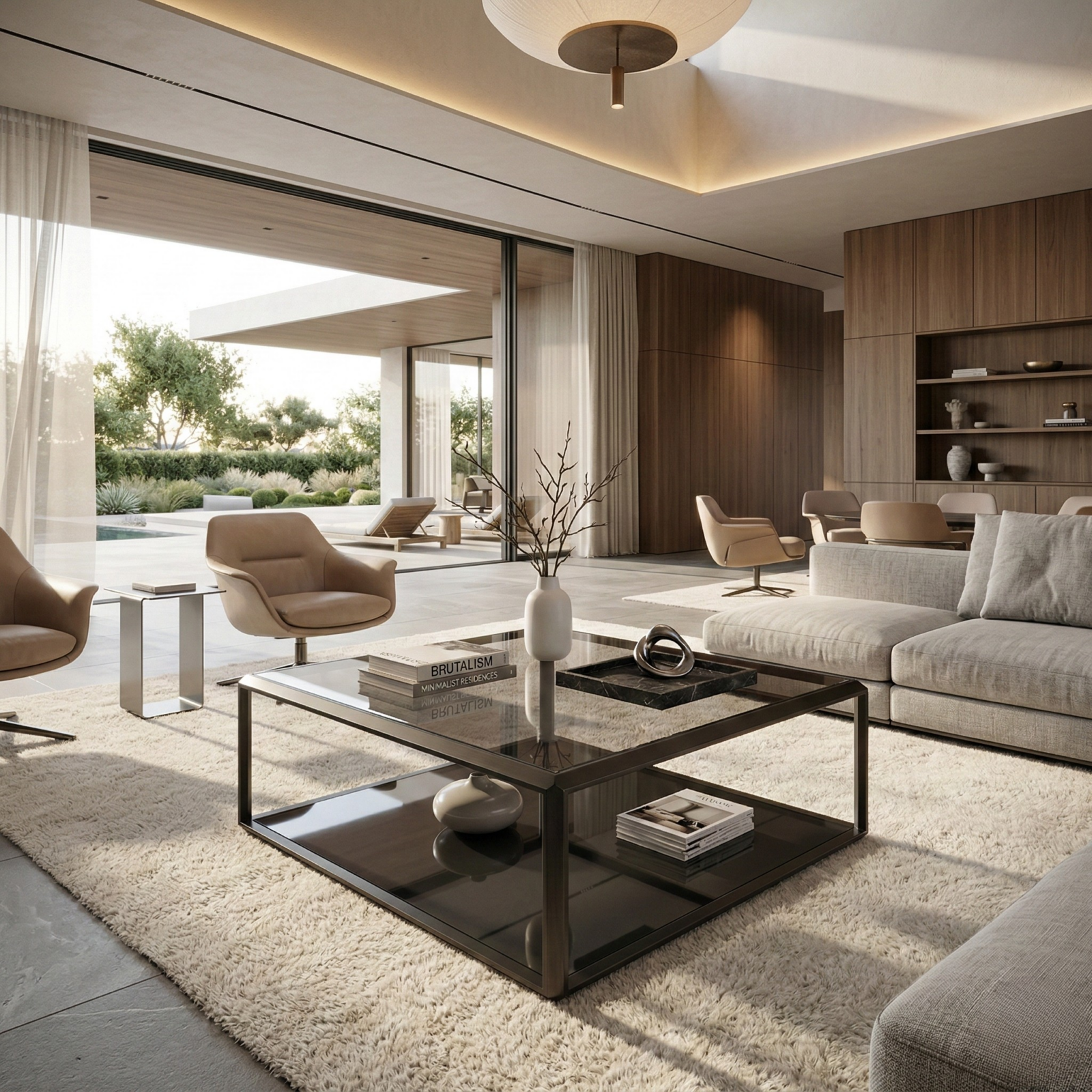 Casperia brings architectural clarity to the living room through a simple, open profile and balanced proportions. The square format makes it easy to centre within a seating arrangement, calm, structured, and visually quiet.