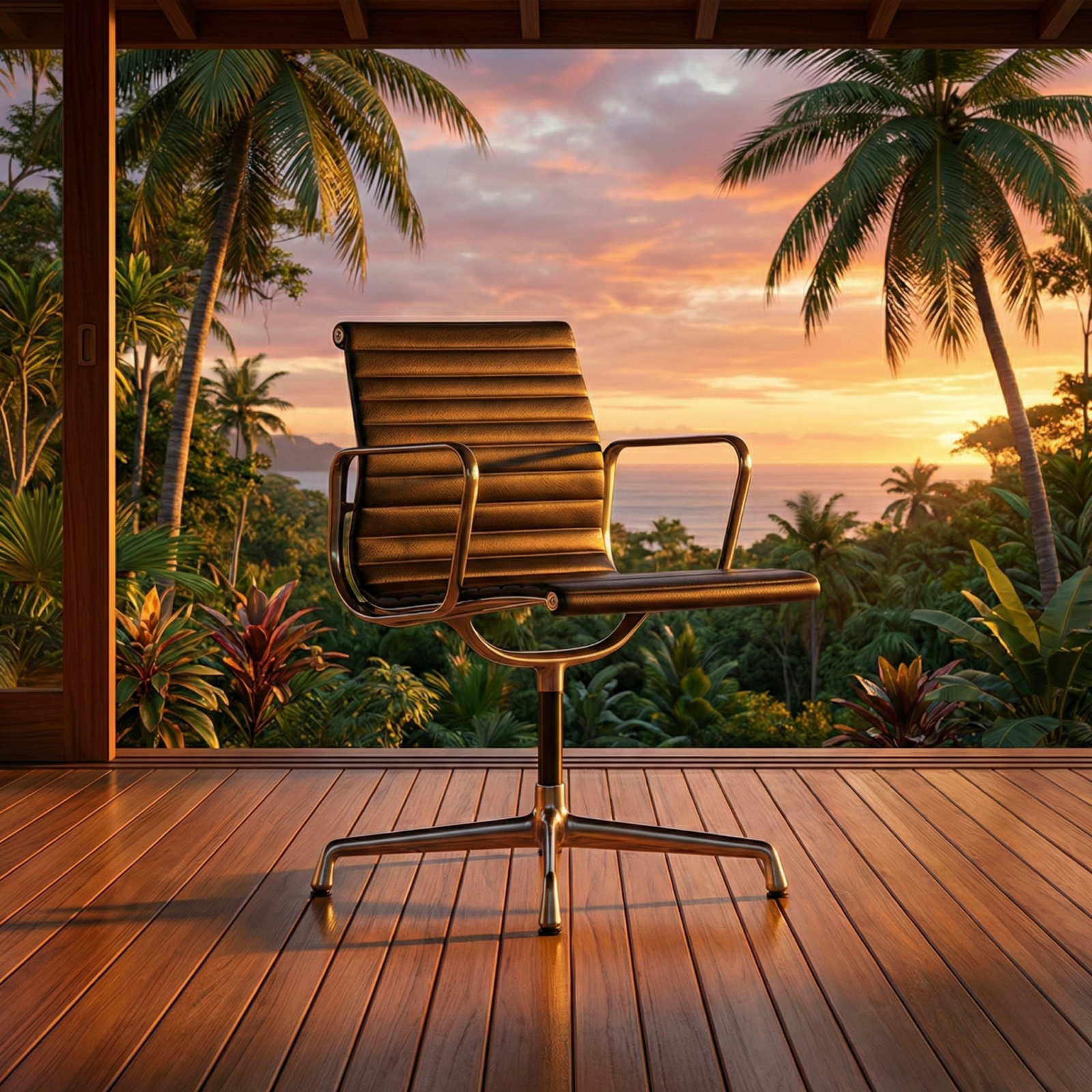 Dengan desain low back yang ringan dan terbuka, kursi ini memberi ruang bagi tubuh untuk bergerak alami tanpa kehilangan dukungan. Struktur aluminium matt black menghadirkan kesan modern yang tegas namun tidak agresif, sementara siluet ikonik Eames menjadikannya relevan lintas dekade. Ini adalah kursi bagi mereka yang bekerja dengan percaya diri—tanpa perlu bersembunyi di balik sandaran tinggi, tanpa perlu pernyataan berlebihan.