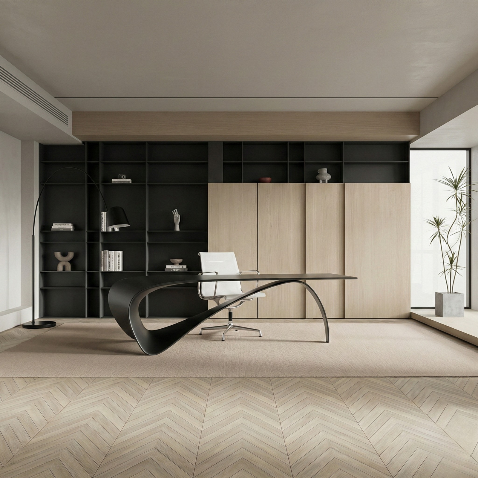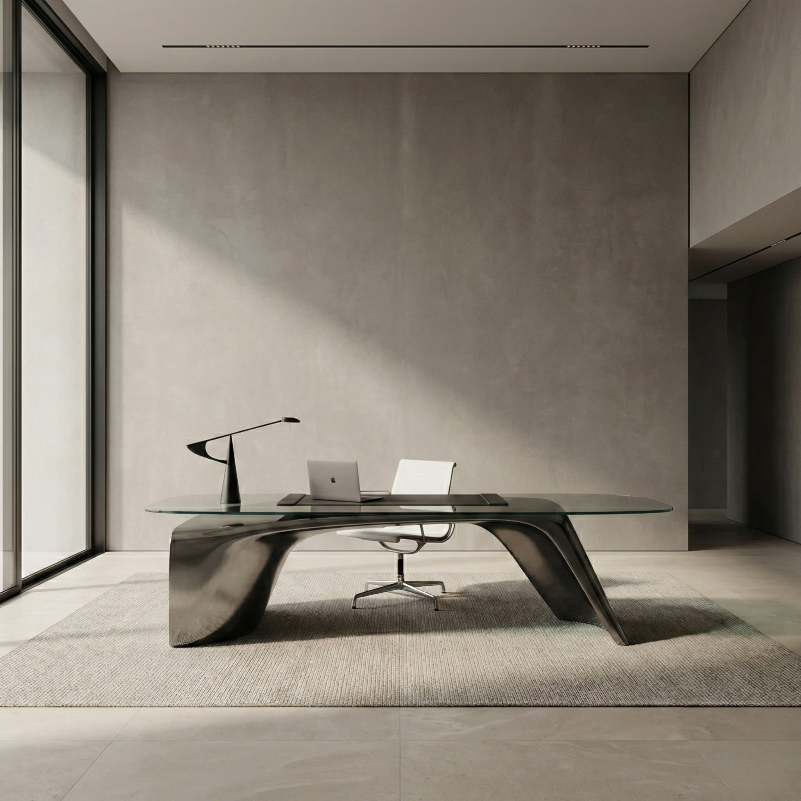 The white mesh upholstery offers a crisp, modern look with breathable support for day-to-day use—ideal for executive desks, meeting rooms, and design-led home offices. With a streamlined base specified without castors, the chair maintains a composed, grounded stance in the room.