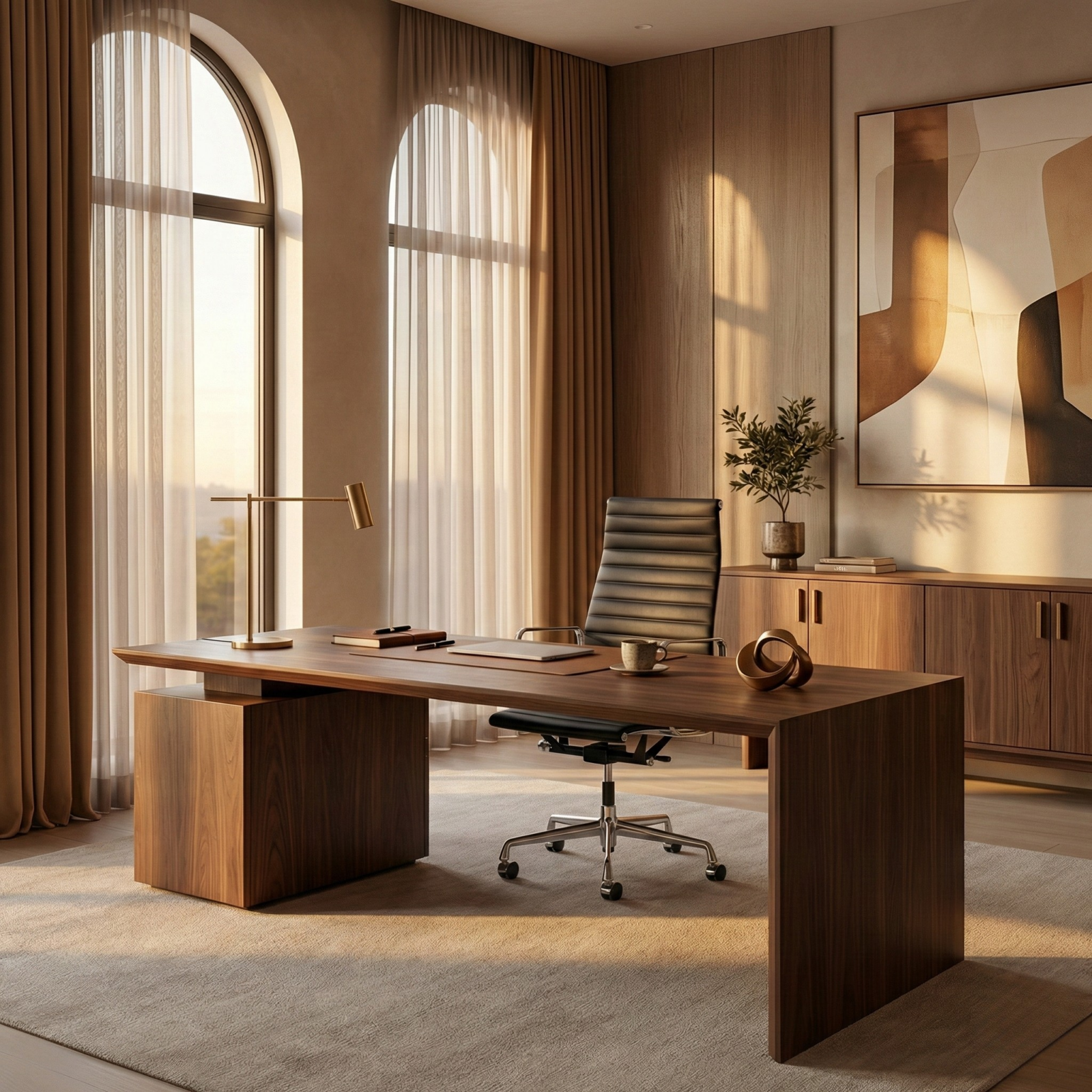 Available in multiple configurations, from full Italian leather with black powder-coated base to chrome and non-castor options. Eames Alumunium Management adapts easily to executive offices, studios, and hospitality work settings.