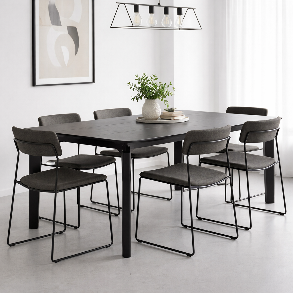 Elden Dining Table – 1.6 bukan sekadar meja makan, melainkan pusat dari berbagai momen yang membentuk kehidupan sehari-hari. Di sinilah pagi dimulai dengan secangkir kopi dan rencana yang perlahan disusun, di sinilah tawa keluarga dan percakapan hangat mengalir tanpa terasa, dan di sinilah kenangan tercipta dari hal-hal yang tampak sederhana namun bermakna. Dengan perpaduan sintered stone yang tegas dan elegan serta struktur ash wood yang hangat dan kokoh, Elden Dining Table menghadirkan keseimbangan sempurna antara kekuatan modern dan keindahan alami. Desainnya memancarkan ketenangan dan kepercayaan diri—sebuah pernyataan bahwa kualitas sejati tidak perlu berlebihan, cukup jujur pada material, proporsi, dan fungsi. Elden diciptakan untuk menjadi meja yang tidak hanya digunakan, tetapi juga dirasakan kehadirannya dalam setiap momen kebersamaan.