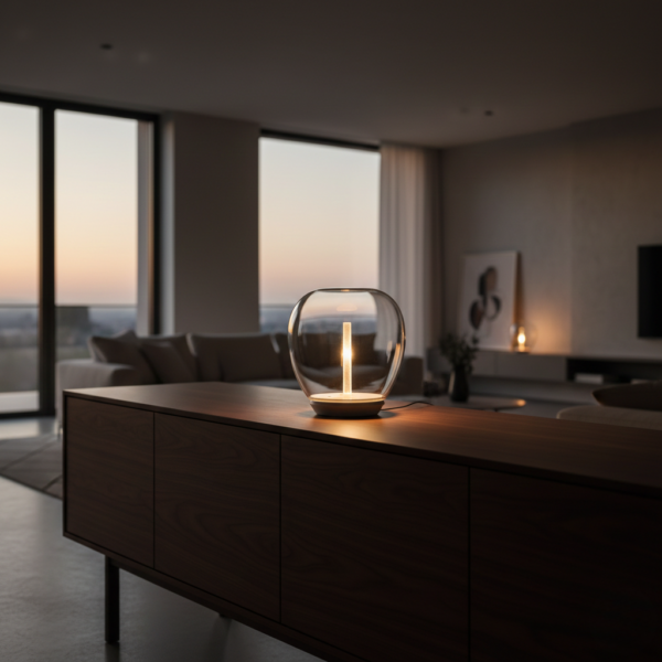 - Ruang Tamu: Sebagai side table yang memancarkan cahaya lembut, menghadirkan kehangatan dan kesan elegan.