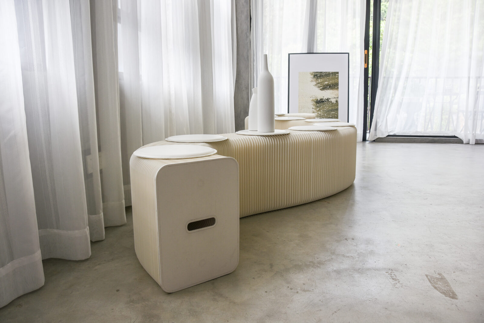 The FLEXA PaperBench™ is a contemporary modular seating solution designed to adapt beautifully to modern living. Inspired by origami principles and crafted from high-strength engineered paper, FLEXA combines elegance, flexibility, and everyday functionality in one sculptural form.