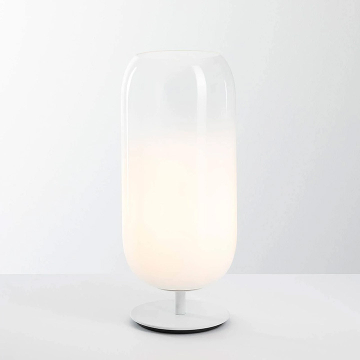 Gople’s elementary shape enhances the beauty of the handmade blown glass. The white version is made following an age-old Venetian technique that fuses white glass with crystal, combining them both during blowing and thus making each piece unique. Gople Lamp RWB calibrates its emissions on the values of PPFD (Photosynthetic Photon Flux Density), necessary for plants in two phases in which the supply of the correct light is crucial: the growth phase is accompanied by blue radiation, with a wavelength of 425 – 450 nm, and the flowering phase by red radiation, between 575 – 625 nm. Gople combines direct and controlled RWB emission with indirect, diffused white light that can be controlled separately.