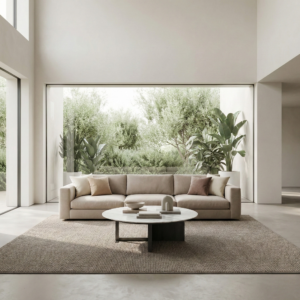 Designed for modern living rooms and hospitality lounges, Grueso sits comfortably alongside modular seating and low-profile sofas, anchoring the space without visual noise.