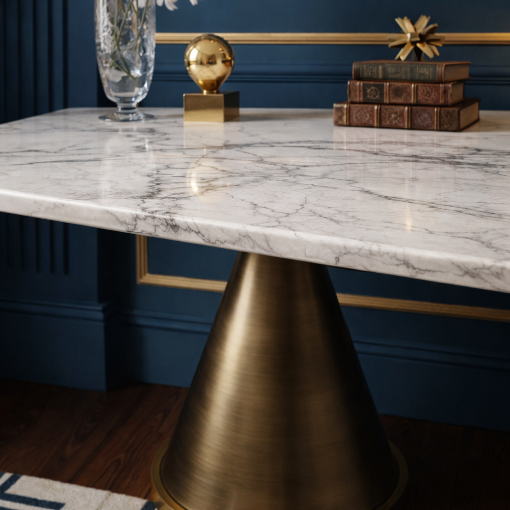 Ruang kosong yang ada di lorong berukuran menengah sering menghadapi tantangan besar. Meja yang terlalu besar dapat membuat ruangan terasa sempit dan berat, sementara meja kecil kerap terlihat biasa dan kehilangan karakter. Selain itu, banyak meja kompak tidak dirancang dengan stabilitas yang memadai untuk penggunaan jangka panjang. Half Cone Dining Table 1.8 menawarkan solusi yang seimbang. Dengan desain setengah kerucut yang ikonik, meja ini menciptakan kehadiran visual yang kuat tanpa membebani ruang. Proporsinya dirancang untuk memberikan kenyamanan, stabilitas, dan kesan mewah yang tetap terasa eksklusif meski dalam ukuran yang lebih ringkas.