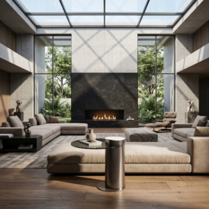Finished with a brushed dark brown stainless steel base and a 10mm grey tempered glass top, Heviz balances weight and lightness, ideal for modern living rooms, executive offices, and hospitality settings.