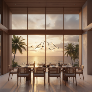 Pada banyak ruang, kebutuhan akan pencahayaan utama sering berbenturan dengan keinginan menjaga tampilan interior tetap sederhana dan tertata. Chandelier yang terlalu dekoratif dapat membuat ruang terasa berat, sementara pencahayaan yang terlalu minimal sering kali tidak cukup secara visual maupun fungsional. Kaku Pendant 08 hadir sebagai solusi dengan desain yang jelas dan terukur.