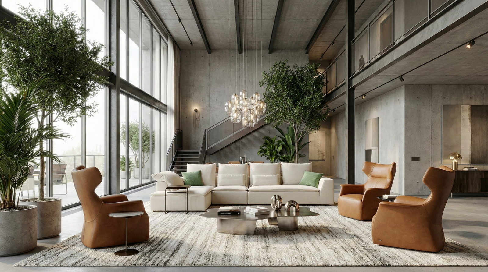 - Clean, low-profile silhouette with wide arm volumes