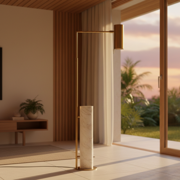 Lesley Floor Lamp adalah perwujudan keanggunan modern yang tenang namun berkarakter. Dirancang untuk menjadi titik fokus tanpa harus mendominasi ruang, lampu lantai ini memadukan kekuatan visual marmer dengan aksen besi berlapis warna Gold White yang lembut dan mewah. Cahaya yang dihasilkan tidak sekadar menerangi, melainkan menciptakan atmosfer hangat, berkelas, dan penuh rasa.