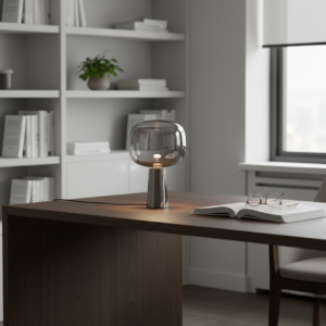 Lupa Table Lamp hadir sebagai solusi dengan menghadirkan pencahayaan yang lebih halus melalui elemen glass yang berfungsi sebagai diffuser alami, serta struktur iron yang memastikan kestabilan dan ketahanan penggunaan jangka panjang.