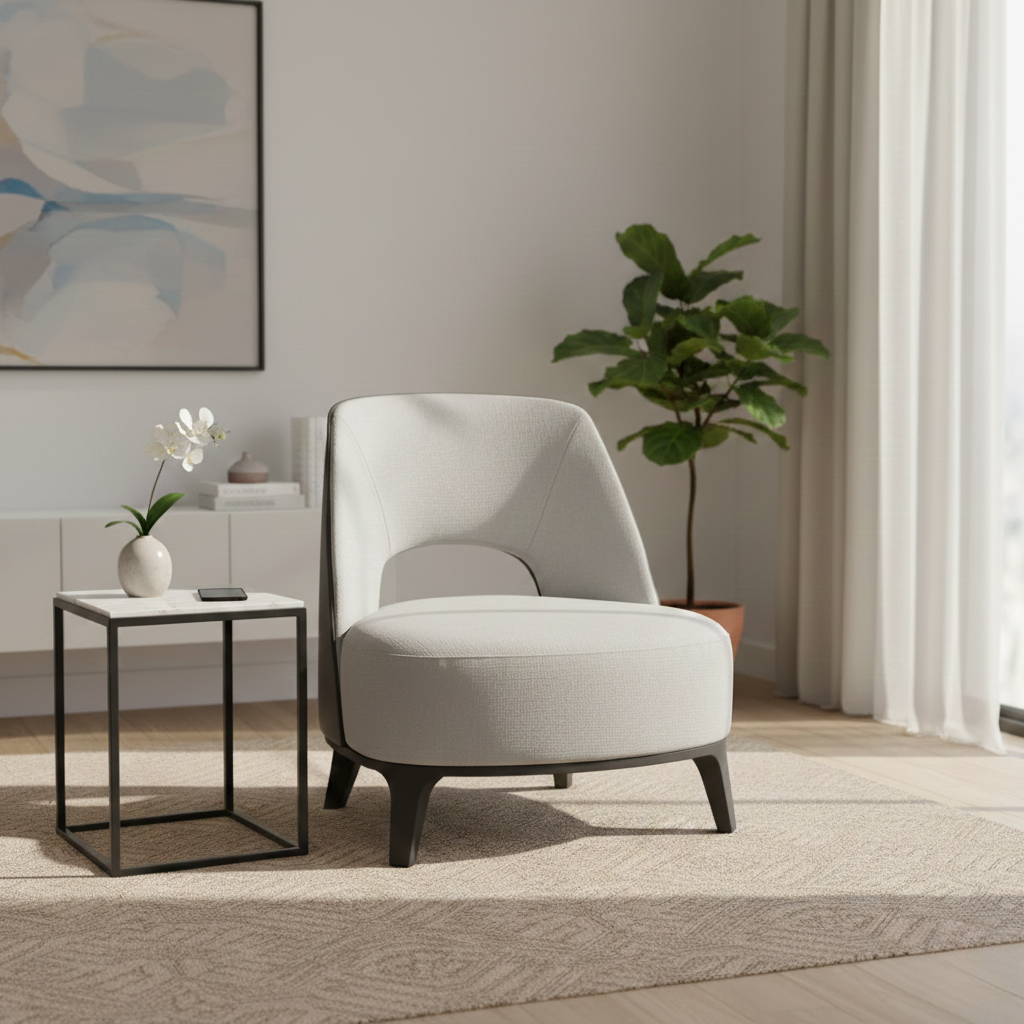 Melrose Lounge Chair Light Grey Fabric memiliki karakter visual yang mudah beradaptasi, menjadikannya pilihan ideal untuk berbagai jenis ruang dan konsep interior.