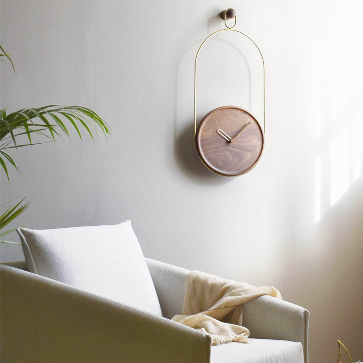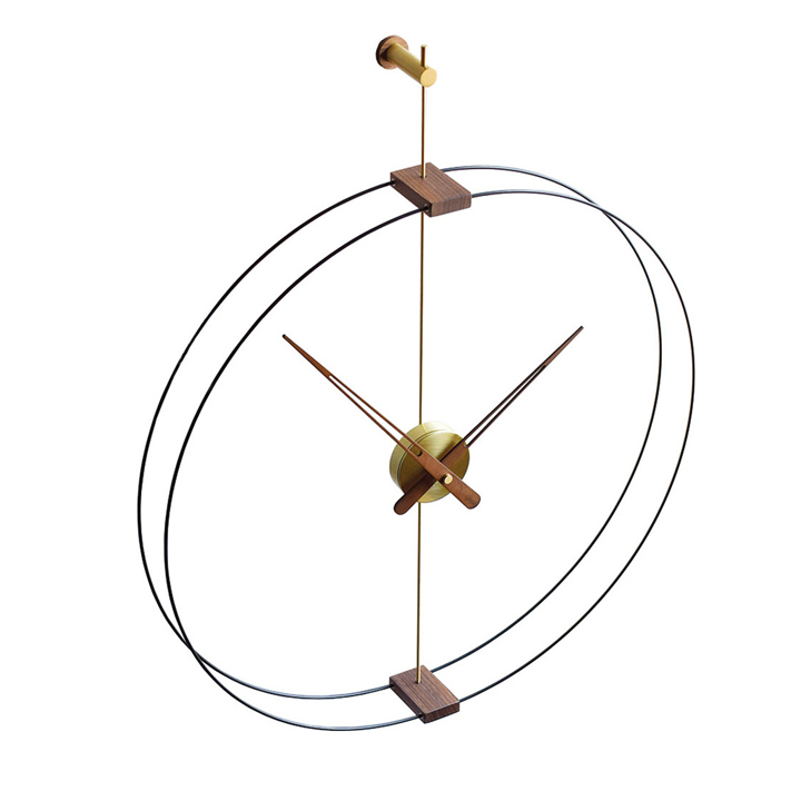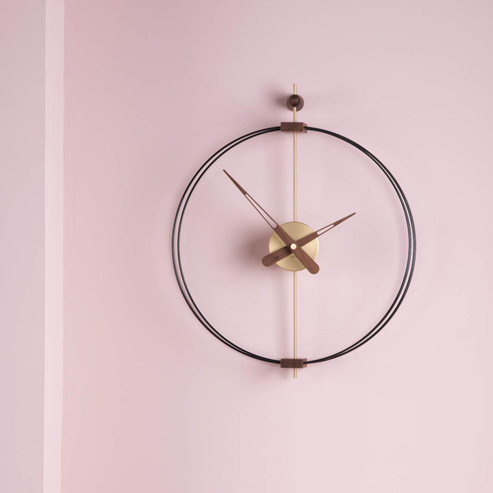 Barcelona is a Minimalist wall clock design by Nomon. that provide your space with a distinguished a character With a double, black fiberglass ring this clock combines walnut pieces with different metallic finishes that perfectly symbolize the essence of the brand. An icon design that has become a timeless classic