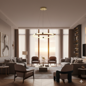 Natan One Ring berfungsi sebagai pencahayaan gantung yang memberikan cahaya merata dan nyaman dengan desain ring yang bersih dan modern. Perpaduan aluminium, acrylic, dan finishing copper white menghadirkan efisiensi pencahayaan, ketahanan material, serta tampilan elegan untuk ruang hunian maupun komersial.