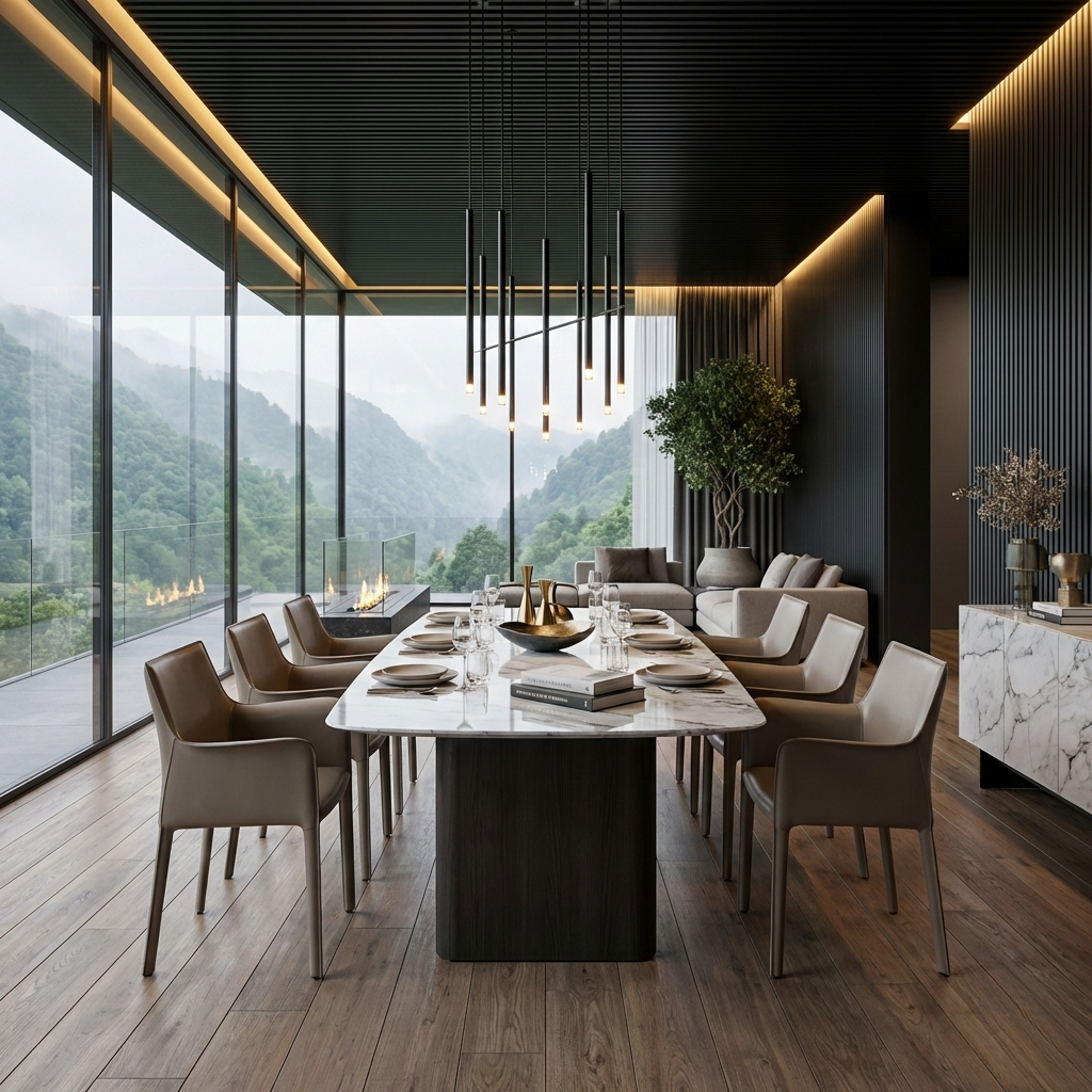 Composed for modern dining spaces and elevated hospitality settings, Neale Dining Table pairs seamlessly with upholstered seating and minimal interiors where material contrast is key.
