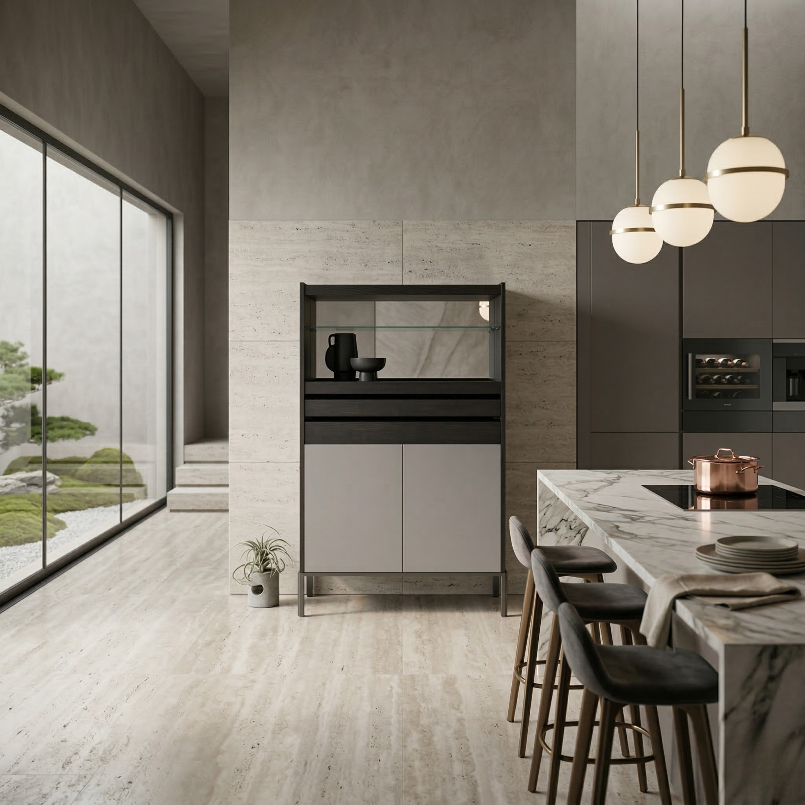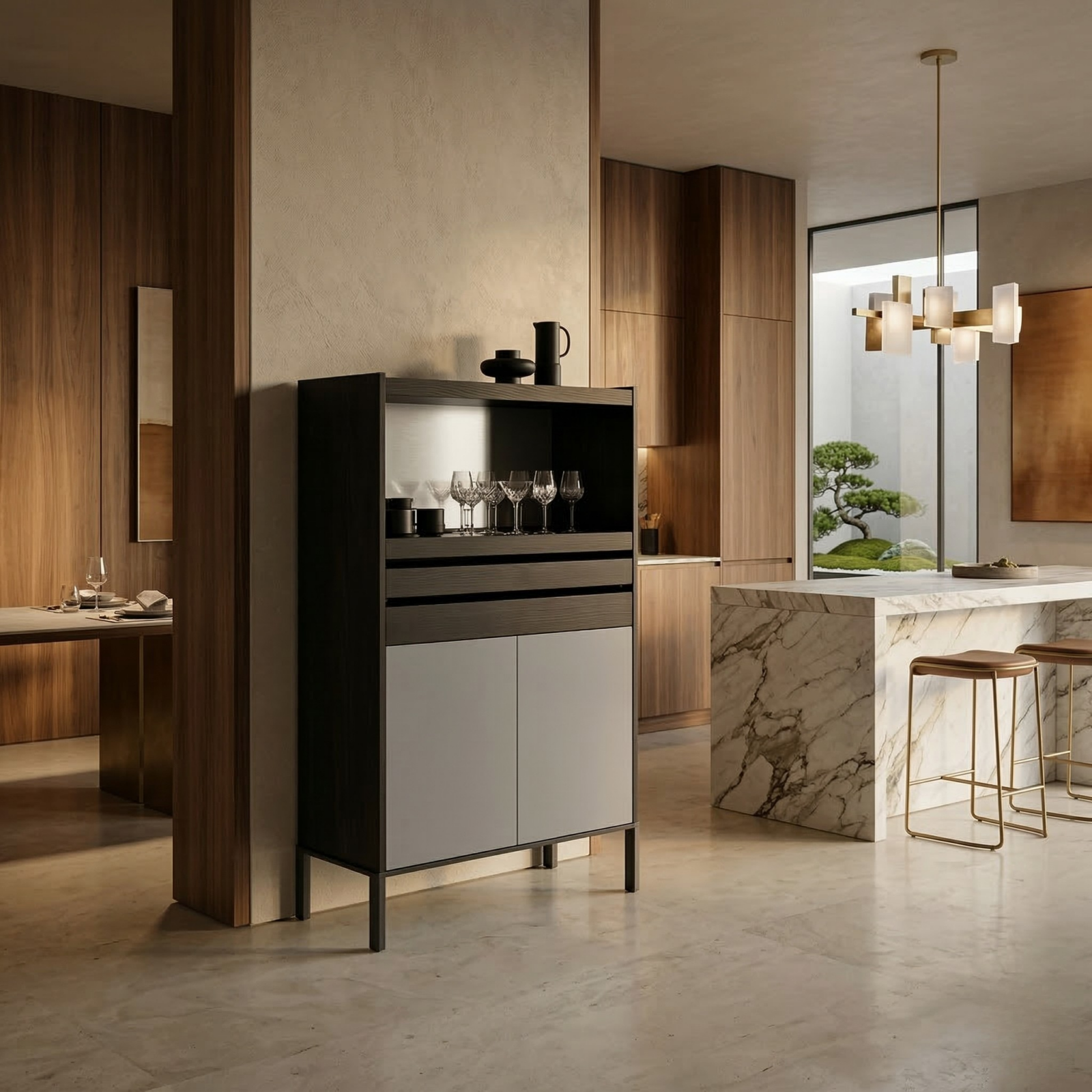 Position Newtonia as a bar cupboard, serving station, or dining-room storage, an understated anchor that works seamlessly alongside timber, stone, and matte cabinetry.