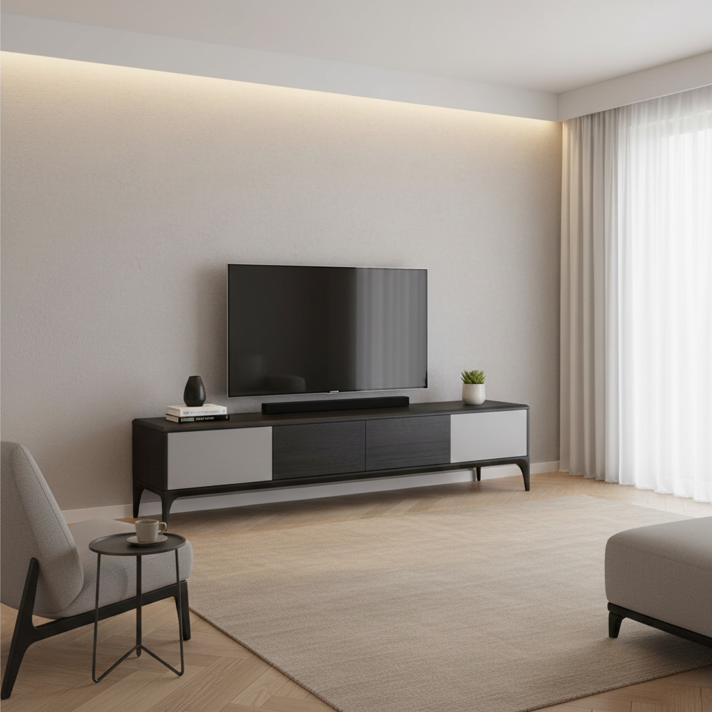 Norfolk TV Unit diciptakan sebagai elemen sentral yang menyatukan estetika, fungsi, dan ketenangan dalam ruang hiburan modern. Di era ketika ruang keluarga menjadi pusat aktivitas—mulai dari bersantai, berkumpul, hingga menikmati hiburan digital—kehadiran furnitur yang tepat menjadi penentu kualitas pengalaman tersebut. Norfolk TV Unit hadir dengan bahasa desain yang tenang namun berwibawa, memadukan keindahan visual dengan struktur yang kokoh dan terorganisir. Ia bukan sekadar tempat meletakkan televisi, melainkan fondasi yang menjaga ruang tetap rapi, harmonis, dan nyaman. Dengan karakter modern yang matang dan detail yang dirancang penuh kesadaran, Norfolk TV Unit menghadirkan rasa percaya diri dalam ruang, menciptakan suasana yang terasa tertata, dewasa, dan berkelas setiap hari.