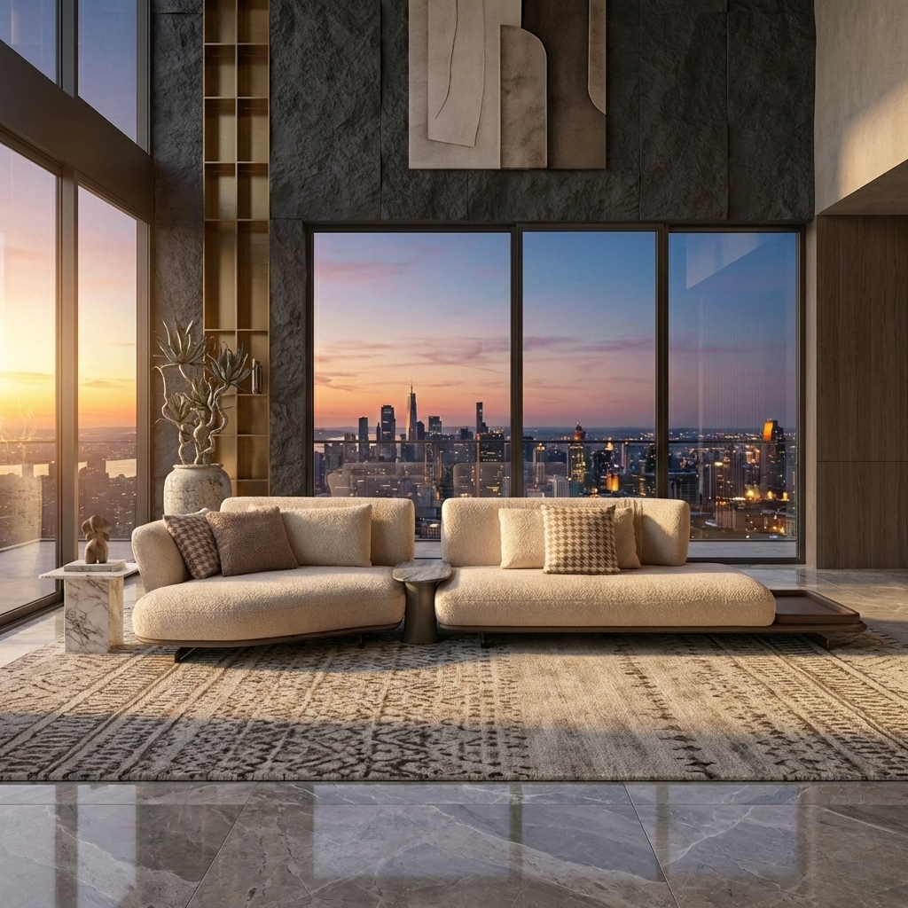 Noyra Sofa Cream Fabric berfungsi sebagai pusat kenyamanan sekaligus pernyataan estetika di ruang tamu, menggabungkan kenyamanan duduk dengan keindahan desain arsitektural yang berkarakter. Lebih dari sekadar sofa, Noyra adalah karya seni hidup dengan garis asimetris, sandaran punggung yang tertata rapi, elemen visual yang terasa melayang, chaise membulat, baki kayu ek hitam, serta meja samping bermarmer emas dan hitam, dibuat dari material kain warna kream berkualitas dan kaki logam berlapis perunggu untuk mereka yang hidup dengan selera, memperhatikan detail, dan beristirahat dalam keanggunan.