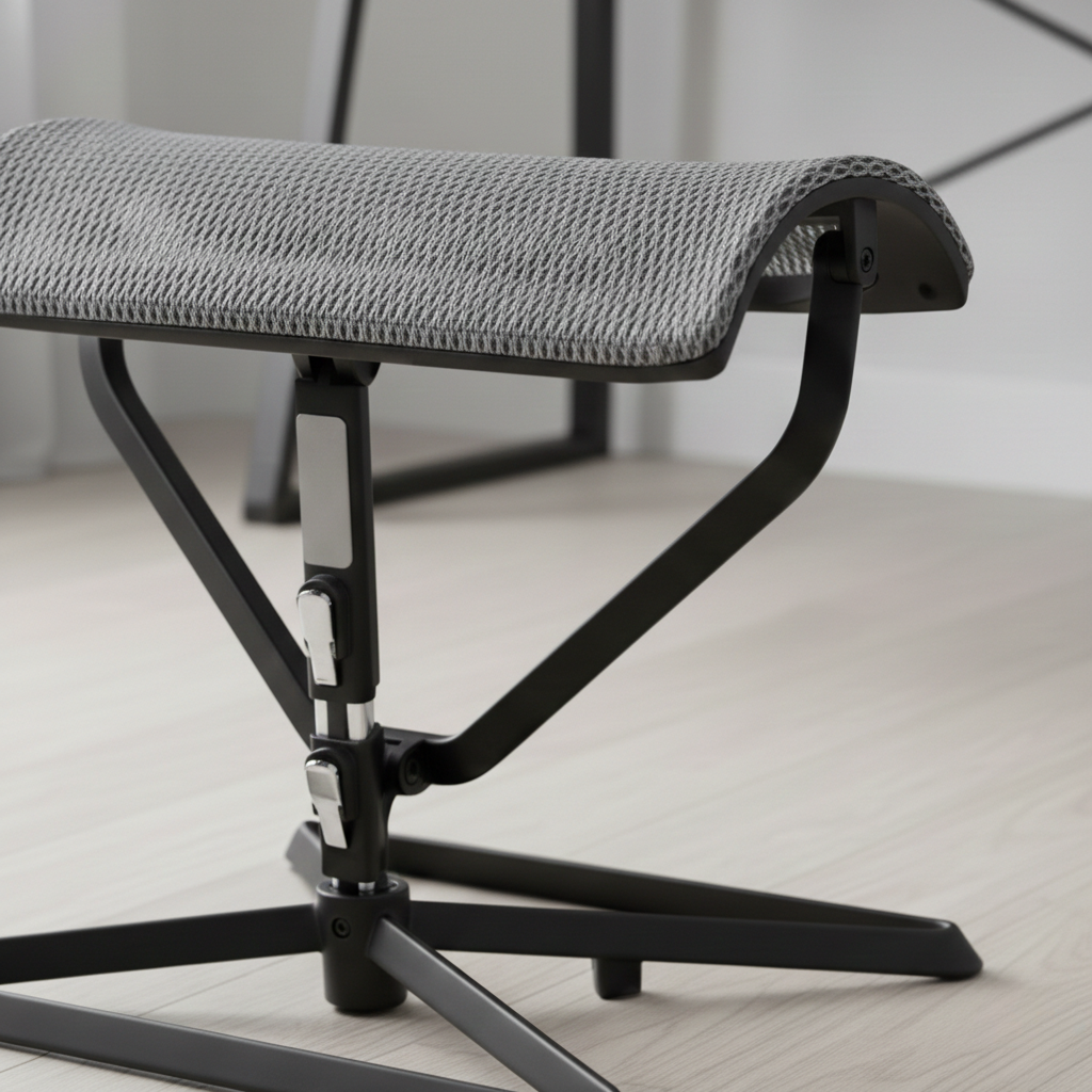 Ottoman A12 Black Aluminium berfungsi sebagai penopang kaki dan elemen relaksasi ergonomis yang dapat disesuaikan tinggi serta sudutnya, dirancang untuk meningkatkan kenyamanan duduk dan kualitas istirahat. Dengan rangka aluminium hitam yang kokoh dan dudukan jaring putih yang sejuk, produk ini menghadirkan kenyamanan adaptif sekaligus memperkuat estetika ruang modern Anda.