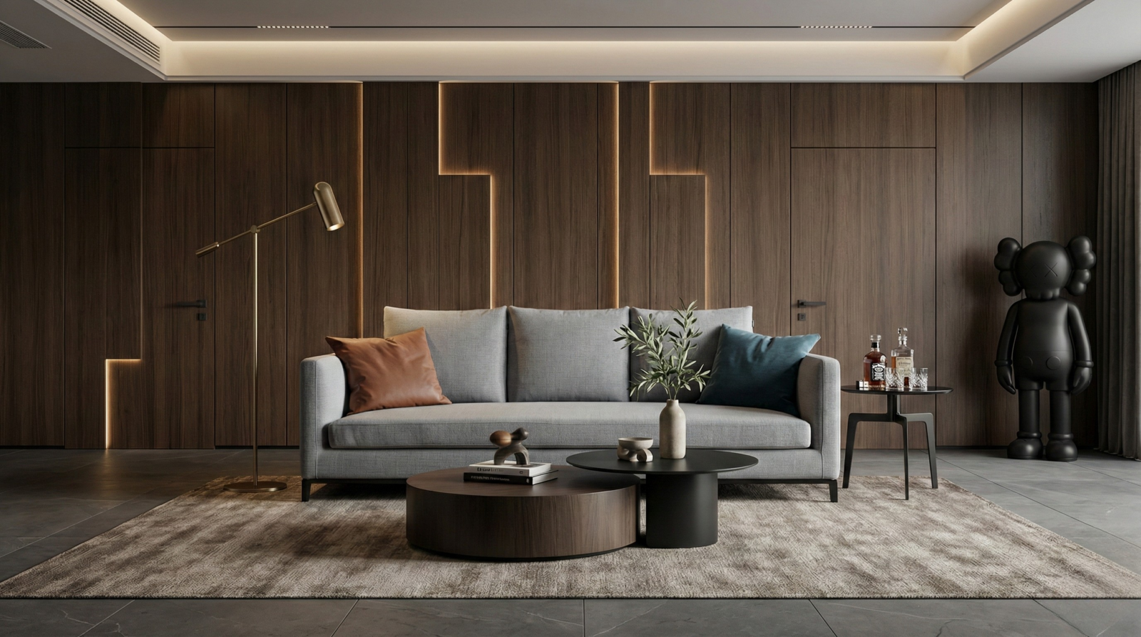 - Optional accent cushions: blue and orange