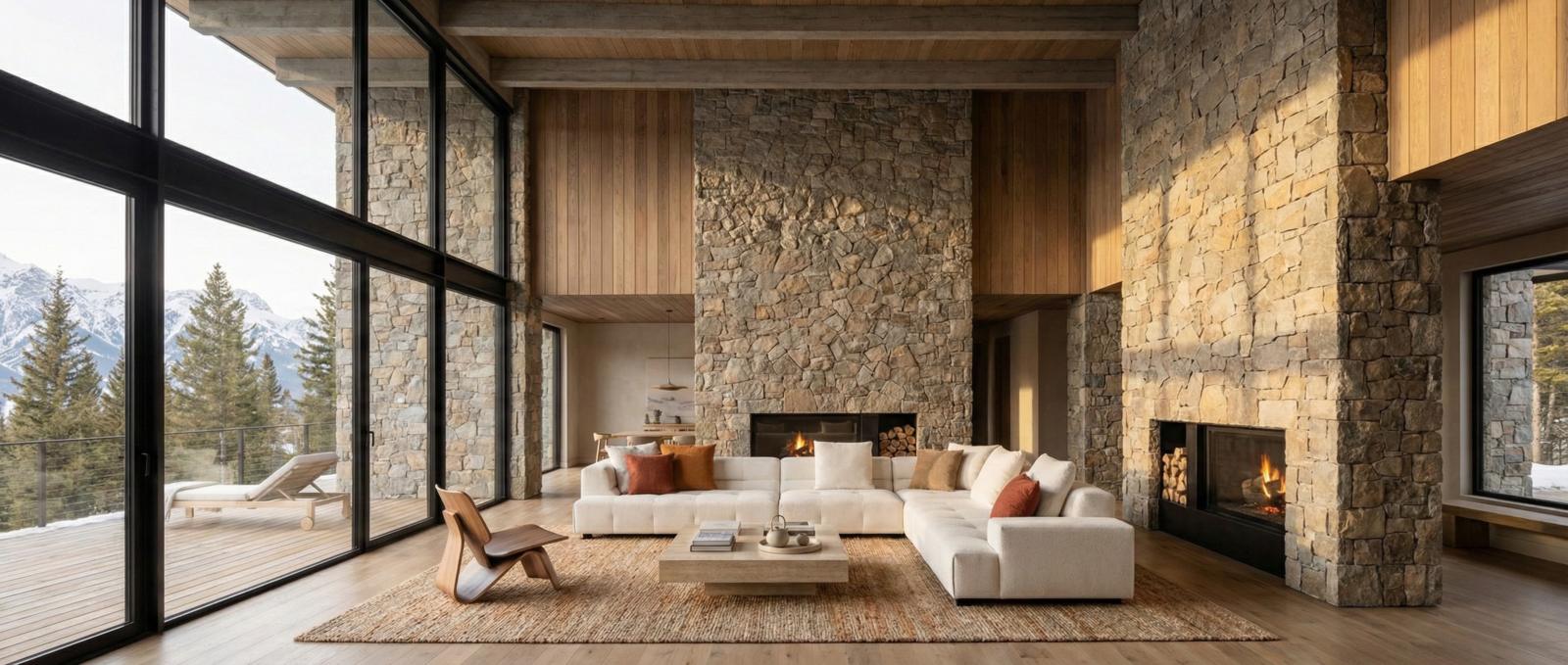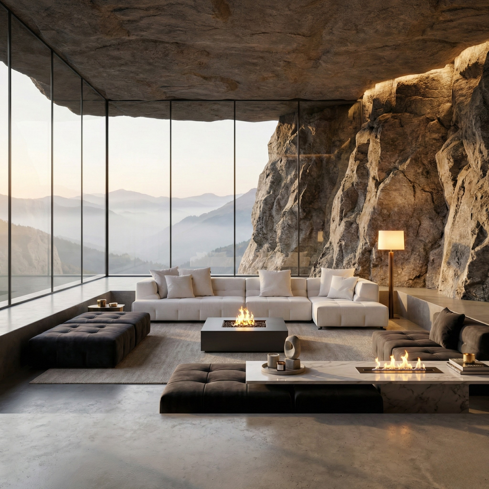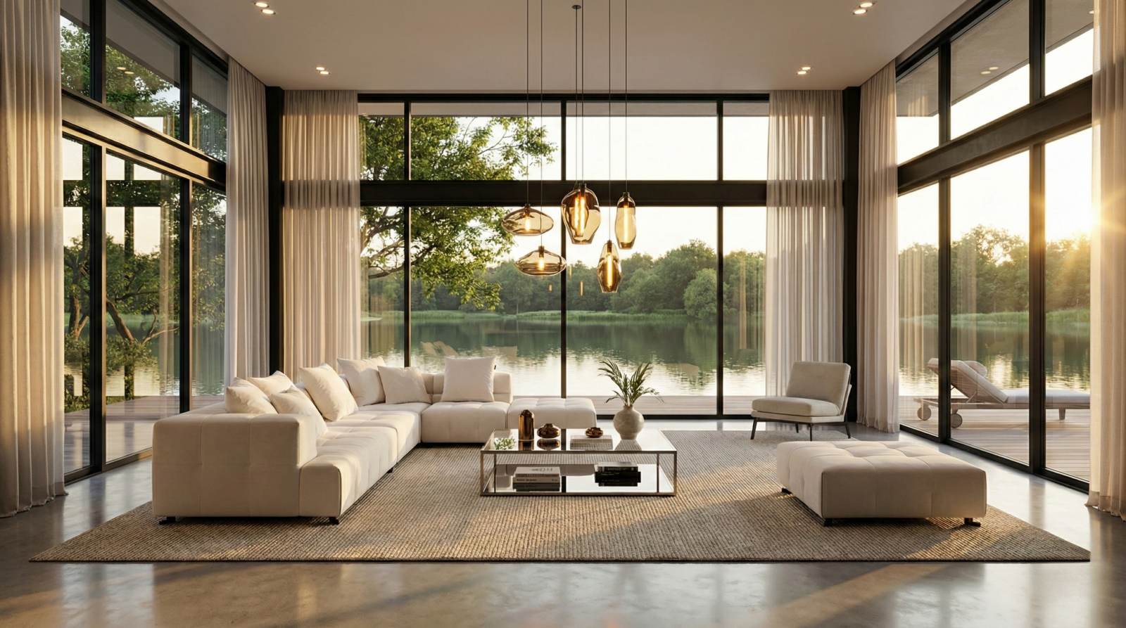 - Low, architectural profile with clean block form