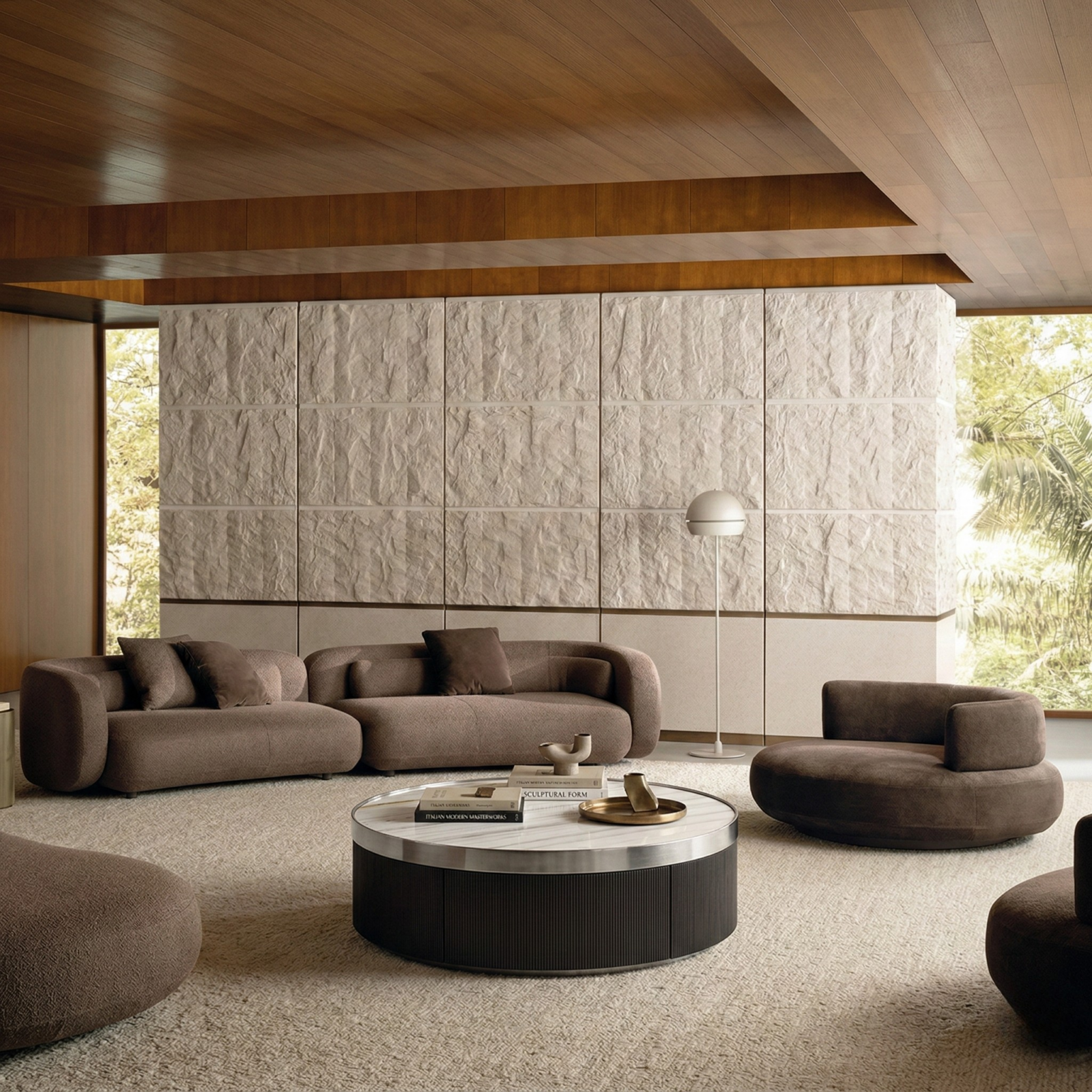 Pileta is defined by a clean round plan and a restrained, low profile, designed to sit quietly within contemporary living rooms, lounges, and hospitality settings. The marble top brings natural depth and tonal variation, offering a refined surface for daily use.