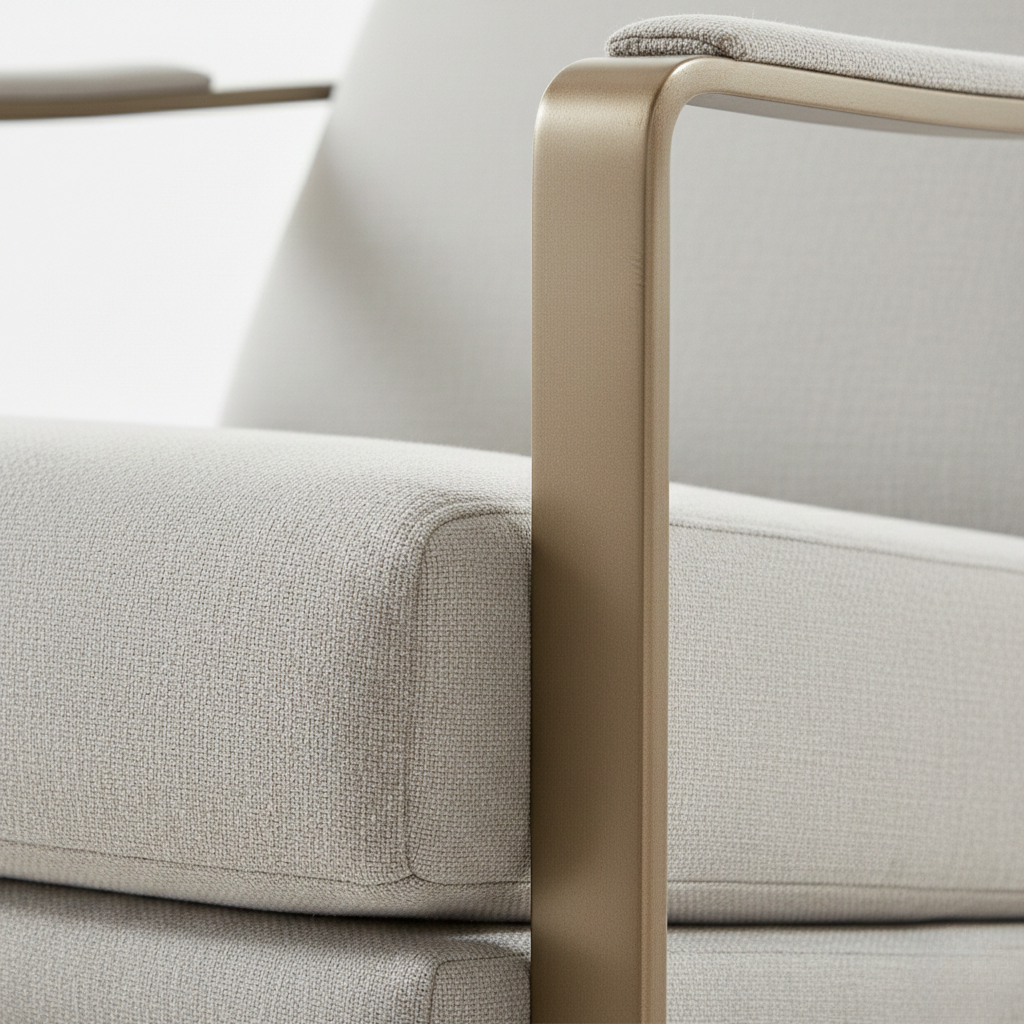 - Desain kaki ramping namun stabil, menciptakan kesan ringan secara visual tanpa mengorbankan kekuatan struktur