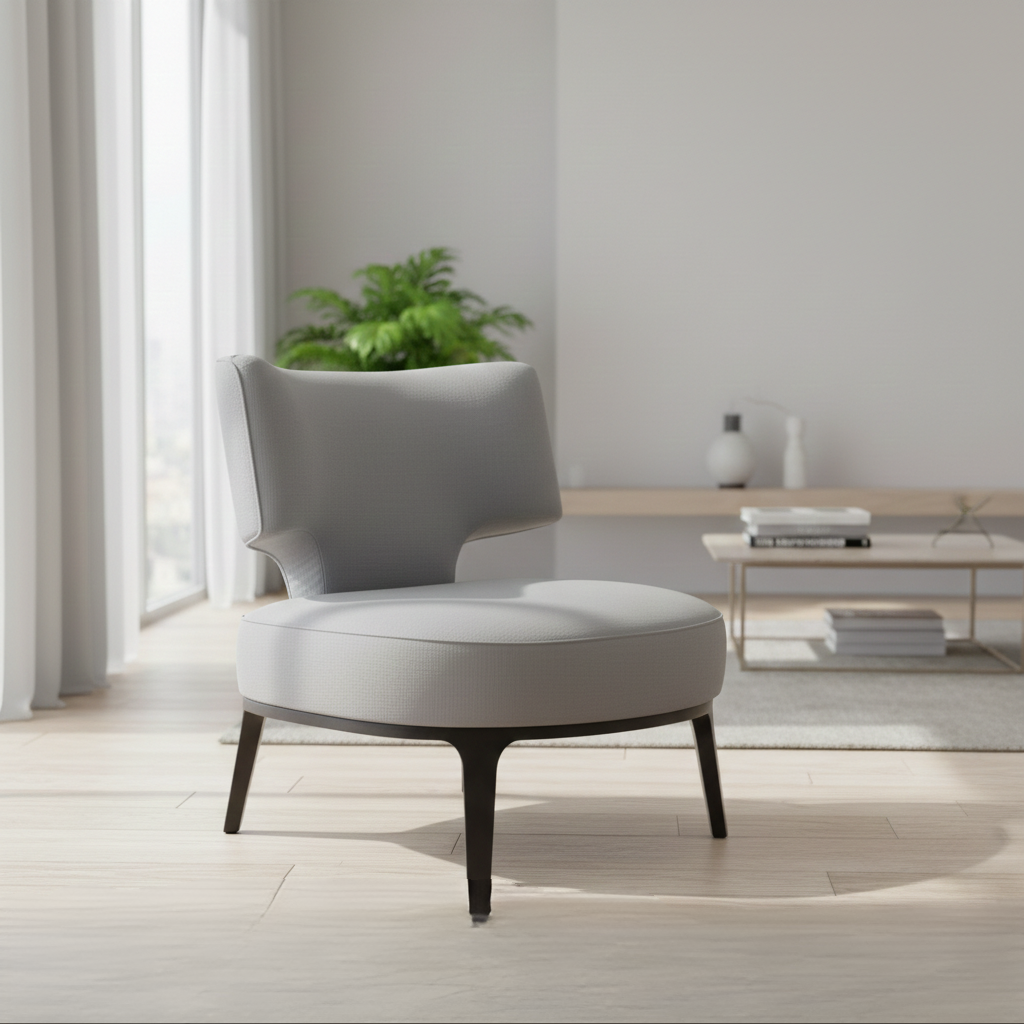 Rios Lounge Chair Light Grey Fabric dirancang agar mudah menyatu dengan berbagai gaya ruang dan fungsi.