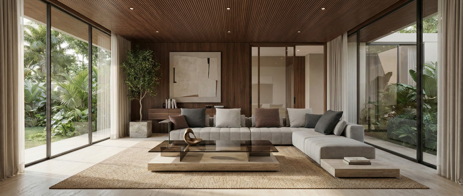 - Low, architectural profile with clean lines
