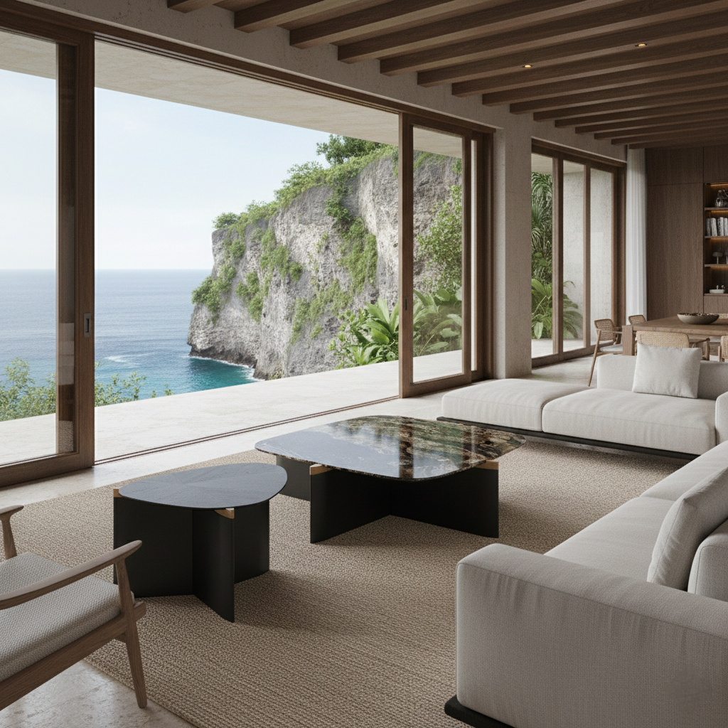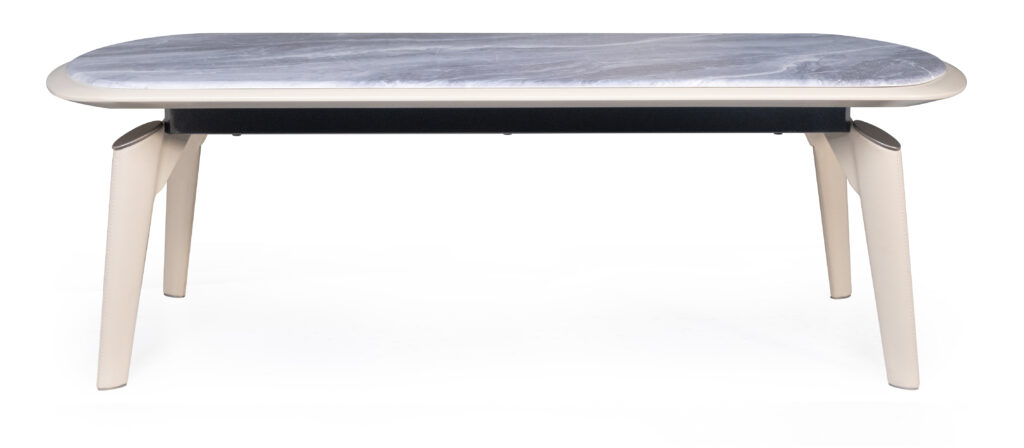 Across the family, the tabletop becomes the main character—offered in premium surface options to suit different interiors, from understated matte finishes to expressive natural stone patterns. Subtle wood corner accents add a crafted, architectural touch without breaking the simplicity.
