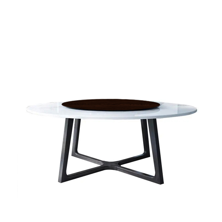 - Baki putar di bagian tengah meja dibuat dari kayu solid, memungkinkan kemudahan berbagi hidangan tanpa mengganggu tata letak meja