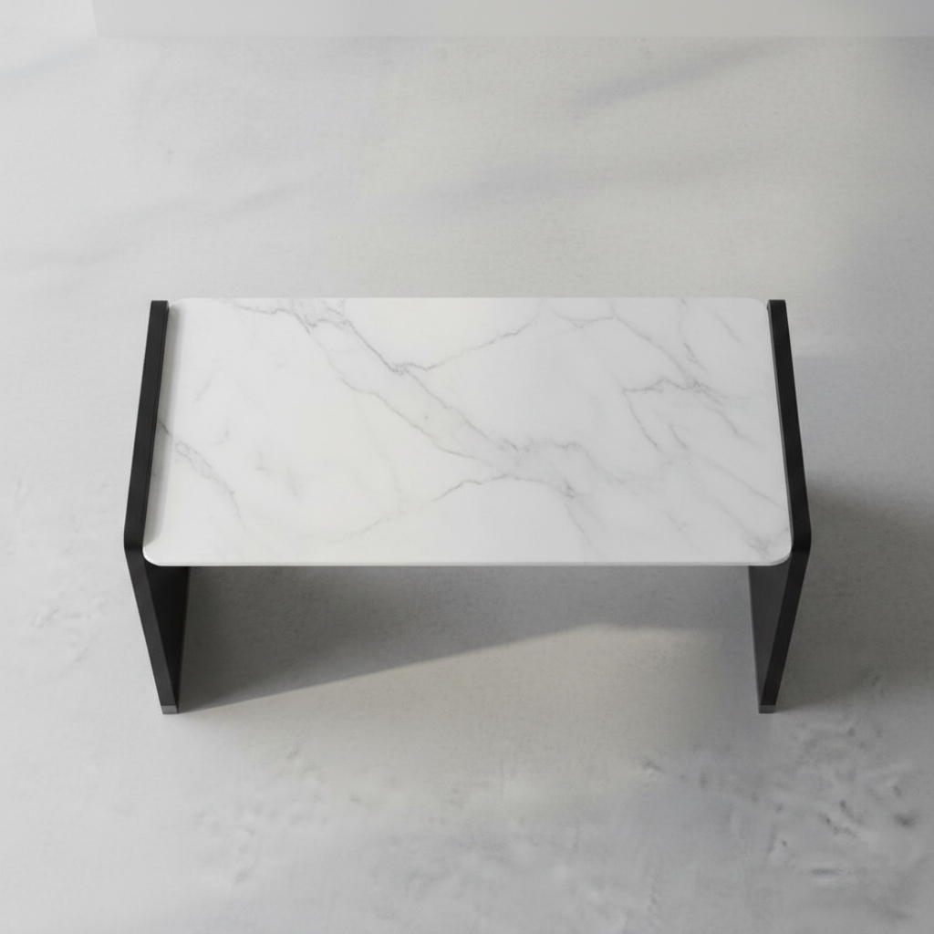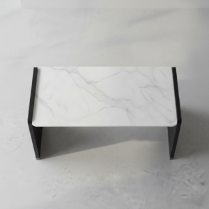 • Permukaan utama menggunakan marmer putih bermotif alami yang memberikan karakter unik pada setiap unit, menghadirkan nuansa eksklusif yang tidak dapat direplikasi secara massal.