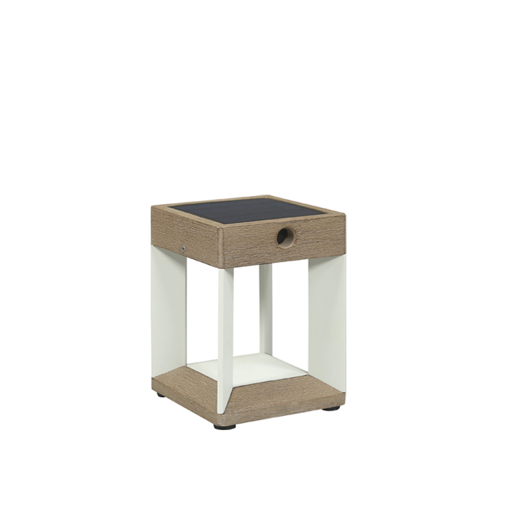 This table lamp is both stylish and practical. Ideal for tables, but also at home in different parts of your garden, its small size and warm glow bestow it with a particular charm. Fitted with a removable, 300-lumen solar module which combines a high-performance solar panel with a lithium battery and 5 state-of-the-art LED lights, it emits a warm, powerful glow that can last from 4 to 150 hours. Light intensity can be adjusted up to 300 lumens, and the battery uses solar energy and daylight to recharge.