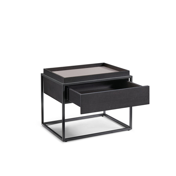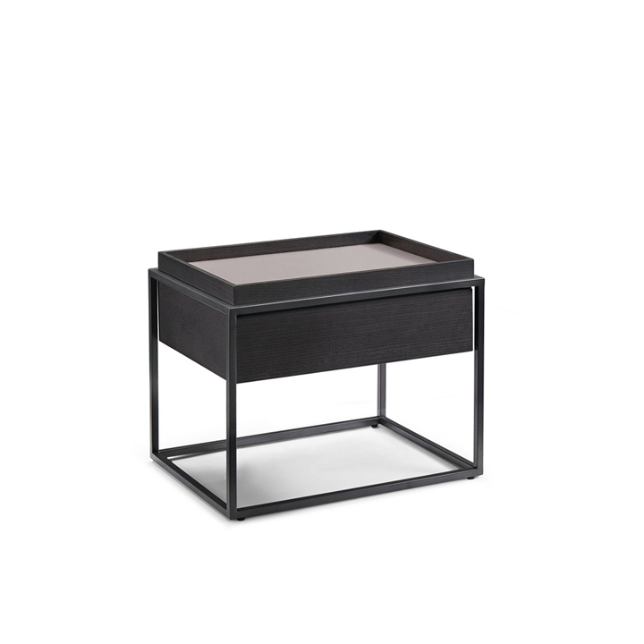 Treia Bed Side Table Metal Oak Veneer