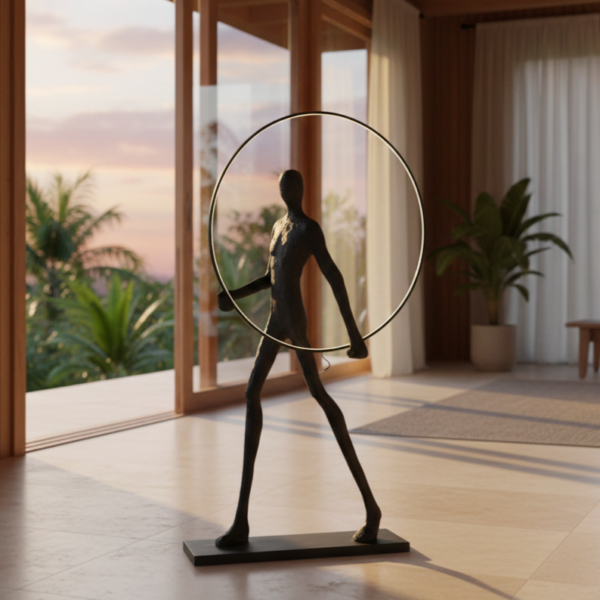 Polyresin sculptural body dengan detail artistik, menciptakan kesan karya seni yang solid.